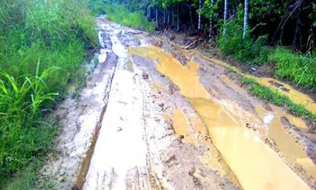 Diceritakan Eman dan Reno, kerusakan yang terjadi pada ruas jalan tersebut sudah berlangsung lama, dan hingga kini belum dilakukan perbaikan secara permanen. Sehingga setiap musim penghujan sebagian pengemudi dan pengendara kendaraan terpaksa melintas di antara pepohonan kelapa sawit milik warga.