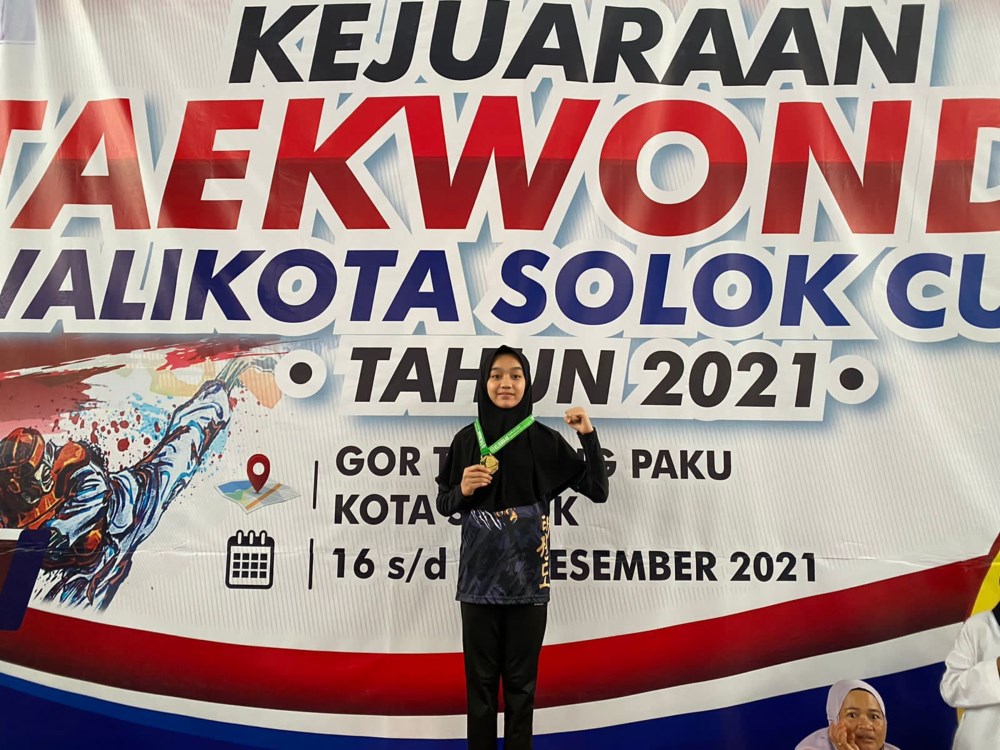 Nadhira Siswi SMPN 4 Pekanbaru Raih Emas di Kejuaraan Taekwondo Walikota Solok Cup