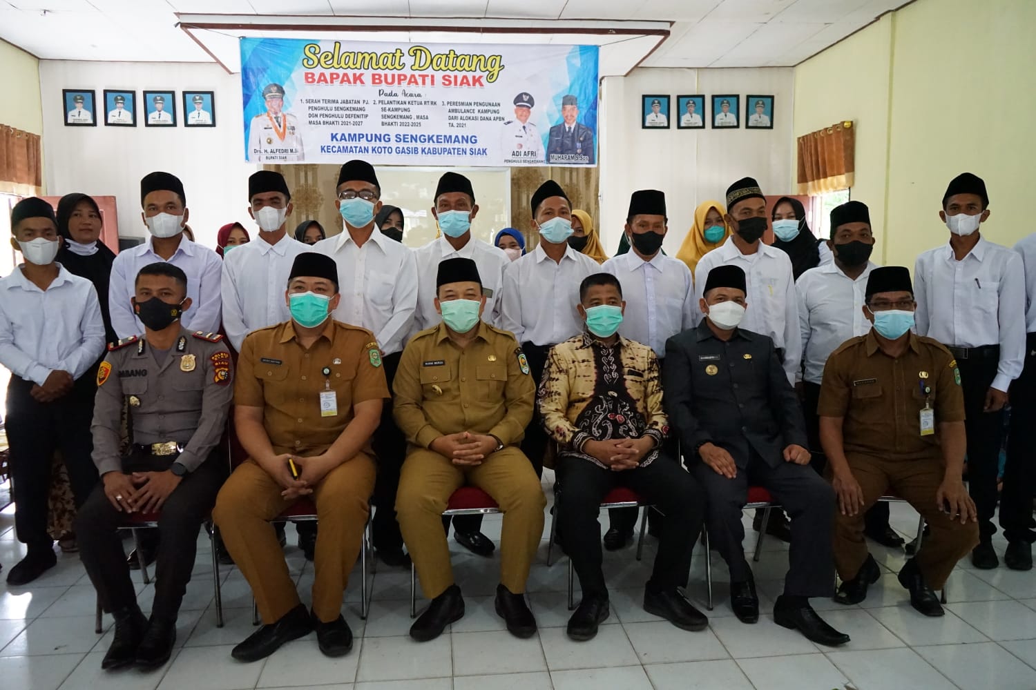 RIAUMANDIRI.CO - Wakil Bupati Siak Husni Merza hadiri serah terima Jabatan Penghulu Kampung Sengkemang, dengan Penghulu Definitip masa Bhakti 2021-2027, yang dilaksanakan di Aula Kampung Sengkemang, Kecamatan Koto Gasib, Senin (3/1/2022).