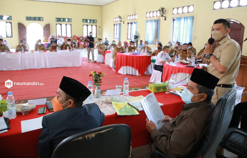 RIAUMANDIRI.CO - Bupati Siak, Alfedri, membuka Musrenbang usulan pembangunan tahun 2023 Kecamatan Minas yang berlangsung di Aula Kantor Camat Minas, Senin (14/2/2022).