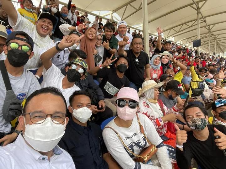 RIAUMANDIRI.CO - Kedatangan Gubernur DKI Jakarta Anies Baswedan menonton MotoGP 2022 di Sirkuit Mandalika, Nusa Tenggara Barat (NTB), Minggu (20/3/2022) mendapat sambutan luar biasa. Anies dielu-elukan para pengunjung sebagai presiden.