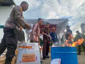 Riaumandiri.co - Sebanyak 2.420 lembar surat suara dimusnahkan di halaman Gudang Logistik .