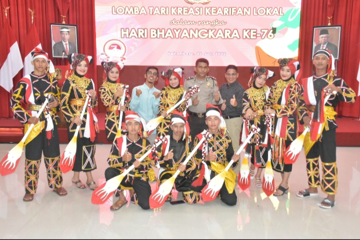 RIAUMANDIRI.CO - Polres Kuantan Singingi mengikuti giat lomba tari kreasi kearifan lokal dalam rangka Hari Bhayangkara ke 76 tahun 2022, yang Diselenggarakan oleh Polda Riau di ruang Tribrata lantai 5 Polda Riau, kamis (30/06/2022) pukul 08.30 WIB.