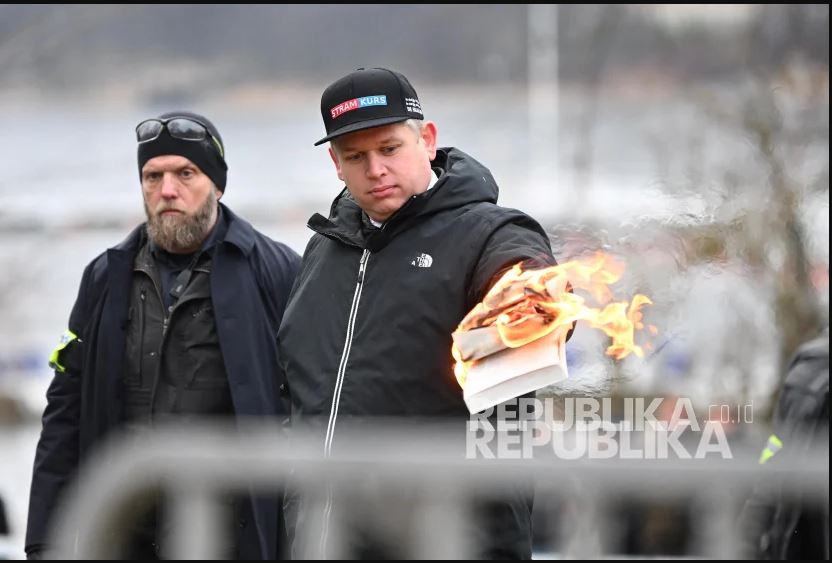 Riaumandiri.co- Seakan tidak pernah kapok melakukan aksinya, seorang politikus anti-imigran dari kelompok sayap kanan Rasmus Paludan membakar salinan Alquran di dekat Kedutaan Besar Turki di Stockholm pada Sabtu (21/1/2023).