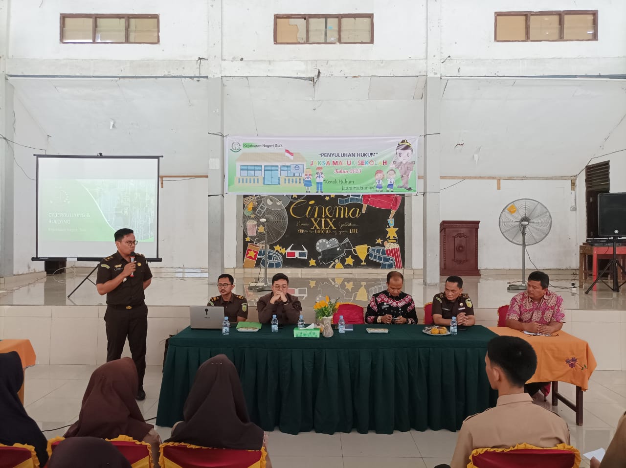 "Kegiatan JMS ini kita mengangkat tema Bullying, Cyber Bullying, dan Pencegahan Penggunaan Narkotika Sejak Dini," kata Kepala Seksi (Kasi) Intelijen Kejari Siak Rawatan Manik.