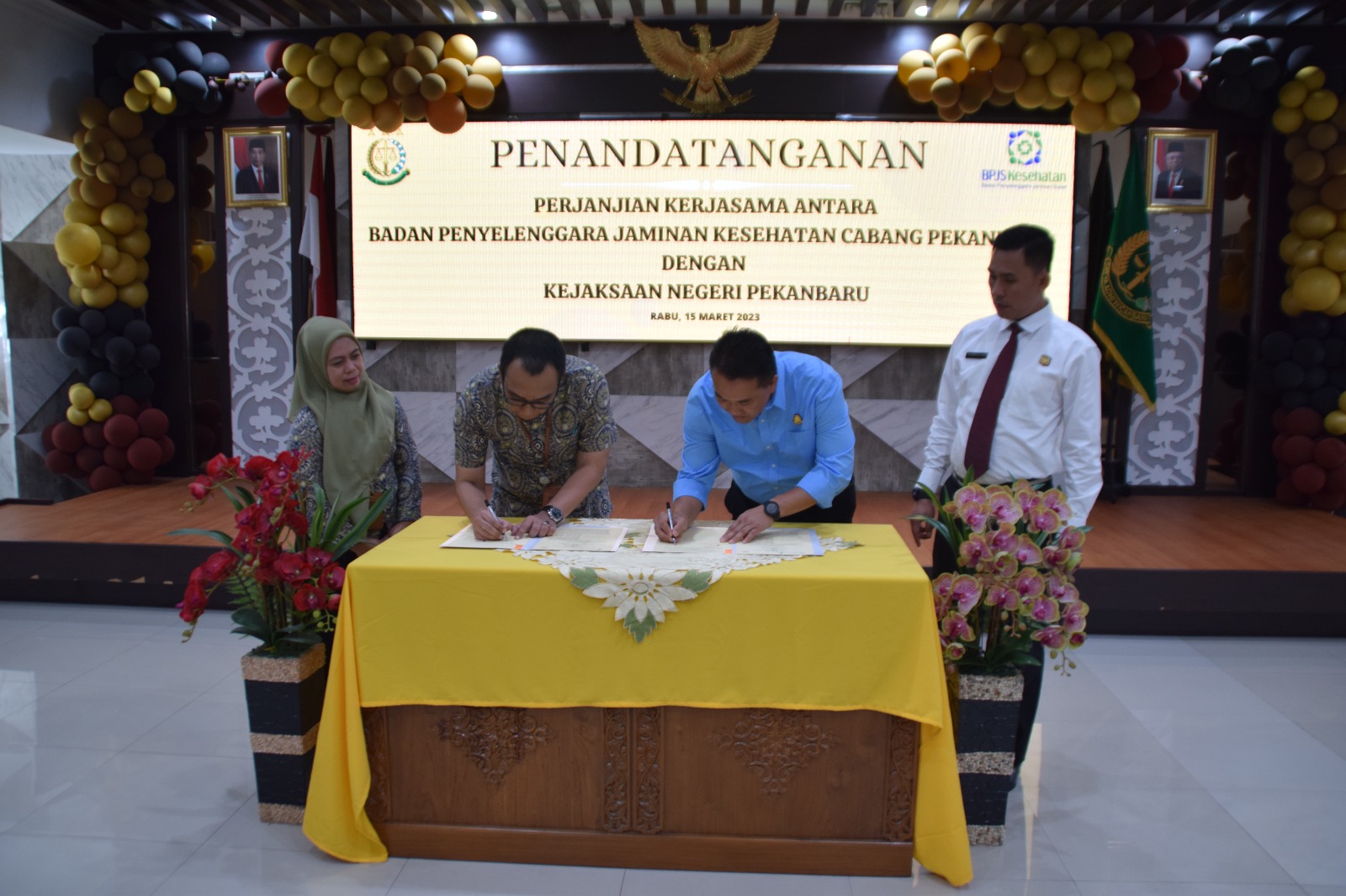 RIAUMANDIRI.CO- Kejaksaan Negeri (Kejari) dan Badan Penyelenggara Jaminan Sosial (BPJS) Kesehatan Kantor Cabang Pekanbaru kembali sepakat untuk bekerja sama. Itu ditandai dengan adanya Memorandum Of Understanding (MoU) antara kedua belah pihak.