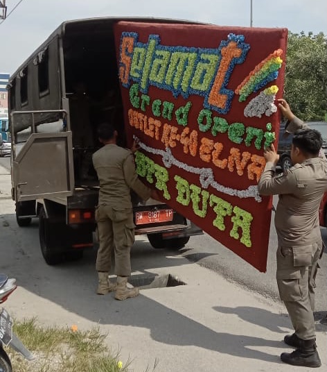 Satpol PP Pekanbaru Sita Papan Bunga Terpajang di Median Jalan
