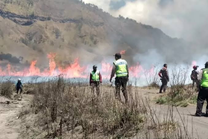 Riaumandiri.co - Gubernur Jawa Timur Khofifah Indar Parawansa mengungkapkan berdasarkan hasil pantauan udara terkini, kebakaran atau api di Taman Nasional Bromo Tengger Semeru (TNBTS), tepatnya di Lembah Watangan masih menyala. Selain itu personel juga terlihat masih melakukan pemadaman.