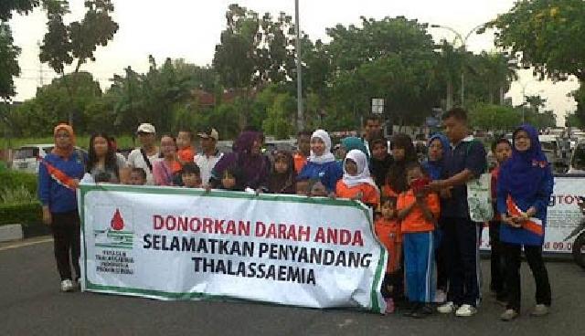 PEKANBARU (HR)-Puluhan anggota YTI Cabang Pekanbaru turun ke jalan untuk mensosialisasikan penyakit thalassaemia kepada pengunjung car free day di Jalan Gajah Mada, Pekanbaru, Minggu (10/5).