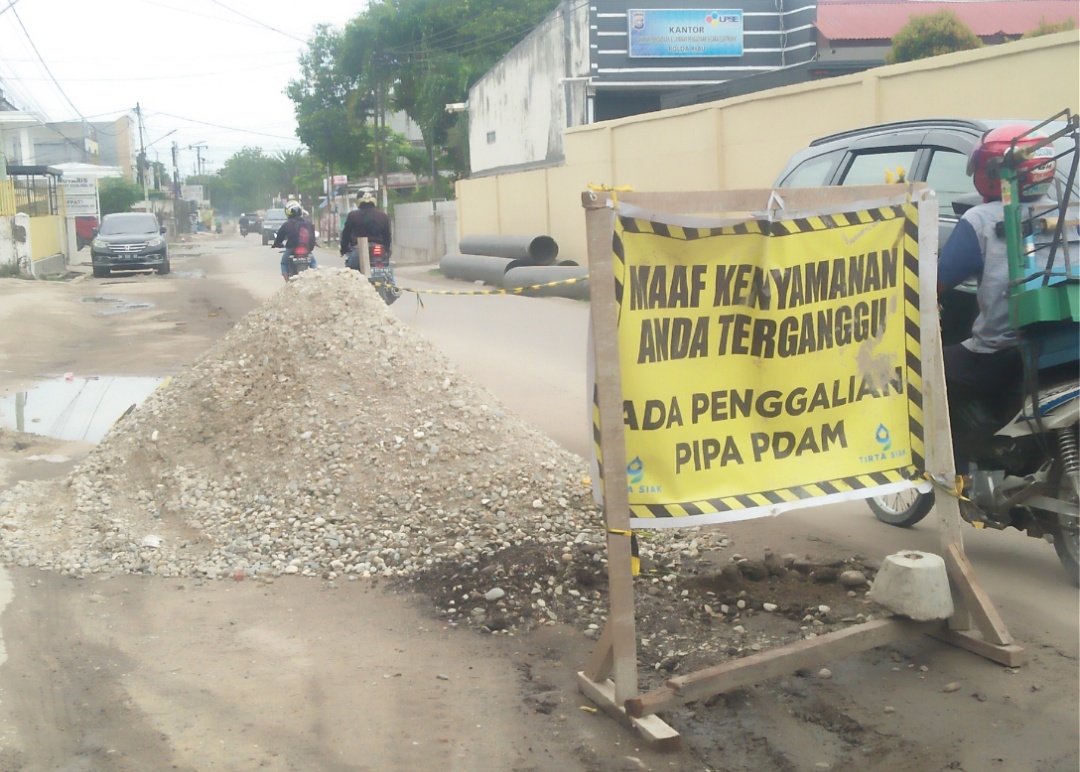 Riaumandiri.co - Pihak Perusahaan Umum Daerah (Perumdam) Tirta Siak didesak untuk segera mengambalikan kondisi jalan ke semula di lokasi pengerjaan bekas galian pipa air minum yang dilakukannya, kondisi jalan rusak dan tidak sepenuhnya kembali ke kondisi sedia kala.