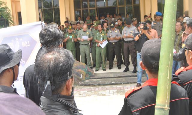 Aksi damai yang digelar di halaman Kantor Dinas Perkebunan dan Kehutanan tersebut berlangsung aman dan lancar di bawah kawalan pihak Kepolisian dari Polres Rohul, bersama Satuan Polisi Pamong Praja Kabupaten Rohul. ***