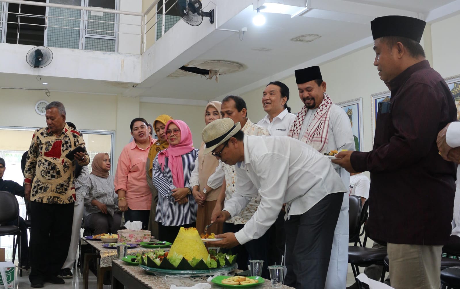 Kegiatan syukuran dan makan bersama ini diawali dengan pembacaan doa dan dilanjutkan dengan makan bersama hidangan khas nasi kuning sebagai simbol silaturahim dan kebersamaan.