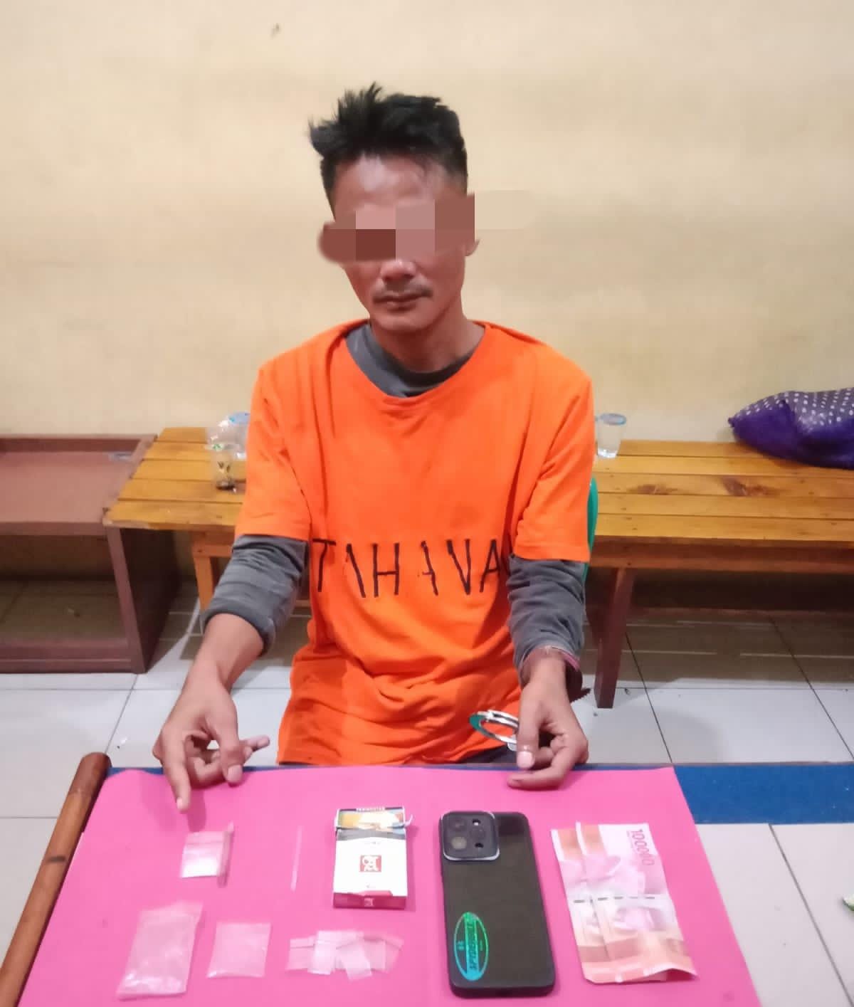 "Pelaku kita geledah dan ditemukan paket narkotika jenis sabu dibungkus plastik bening, uang Rp200 ribu, sendok pipet, kaca pirex, bungkus rokok Sampoerna, 10 plastik klip beling dan HP warna hitam," ungkap Kapolsek.