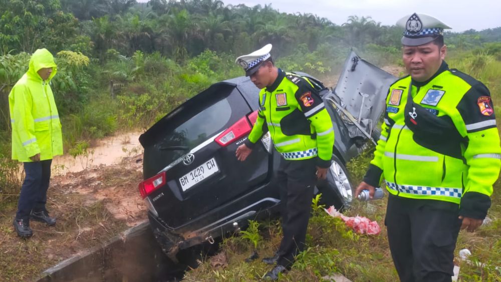 Hasil pemeriksaan diketahui korban adalah warga Jalan Pemda, Pangkalan Kerinci, Pelalawan. Selain terperosok keluar jalur tol, mobil juga rusak parah setelah masuk ke dalam parit.