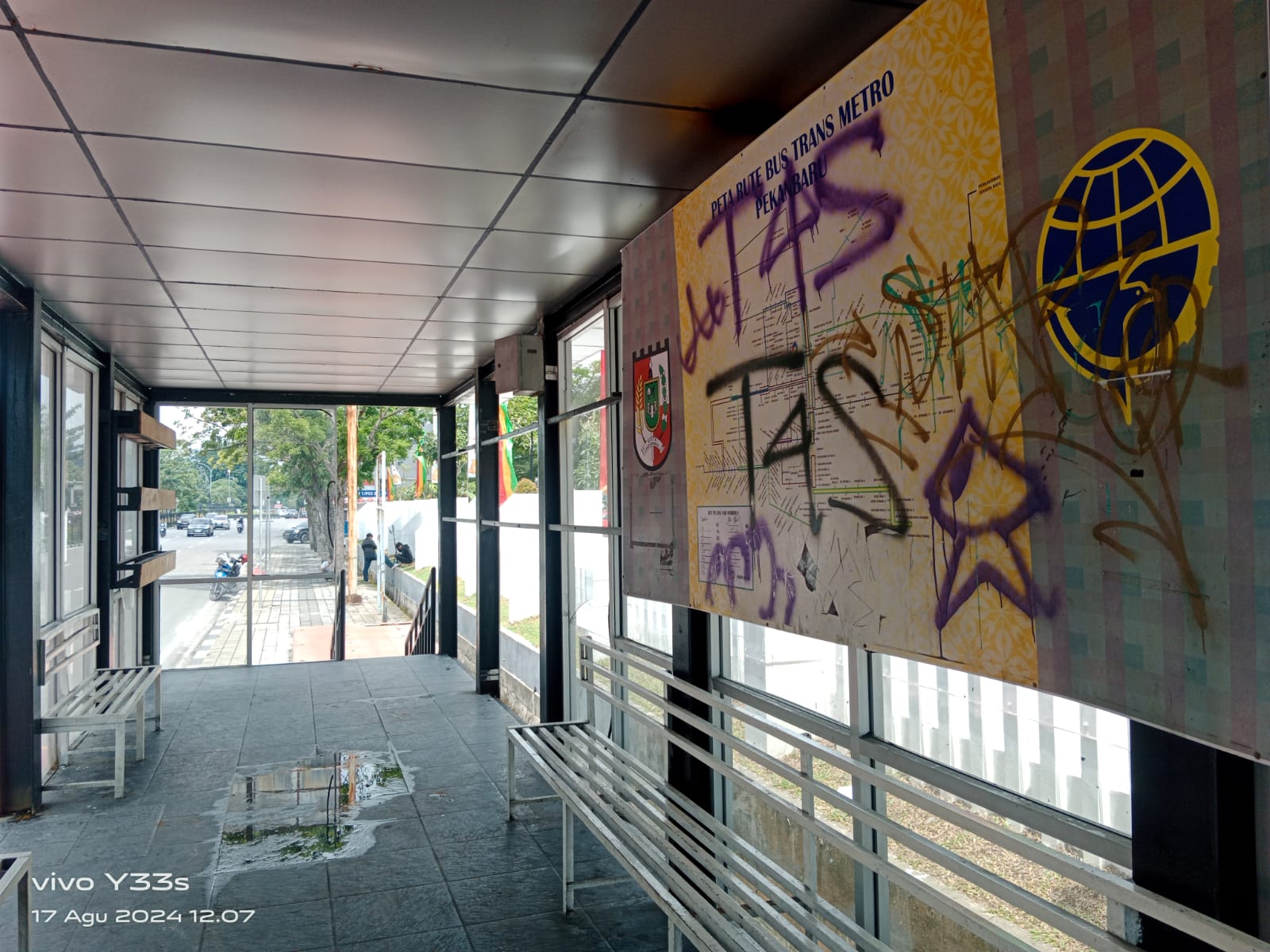 Riaumandiri.co - Di Hari Kemerdekaan Republik Indonesia, sangat disayangkan masih banyaknya perilaku masyarakat yang merusak fasilitas umum, tak terkecuali halte depan BRK Syariah.