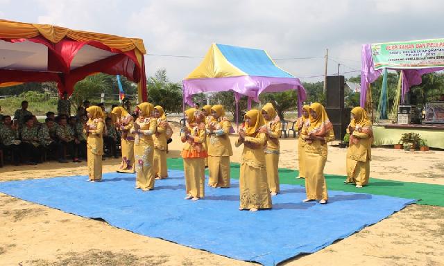 Penampilan seni tari Nirmala majelis guru SMPN Sorek Dua, Kecamatan Pangkalan Kuras dalam acara perpisahan murid, baru-baru ini.
