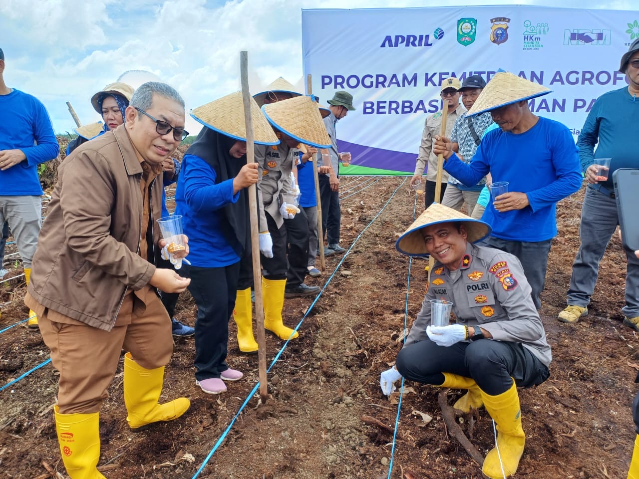 Hadir dalam kegiatan tersebut, Manajemen PT Nusa Prima Manunggal (April Grup) Robert, Kapolres Siak diwakili oleh Kabag SDM Polres Siak Kompol Syafril, Kapolsek Siak Kompol Ali Azar, Kasiwas Polres Siak AKP Asril, Camat Dayun Wahyudi, Dinas KPH Provinsi Riau Faisal dan Nurhadi Rahim.