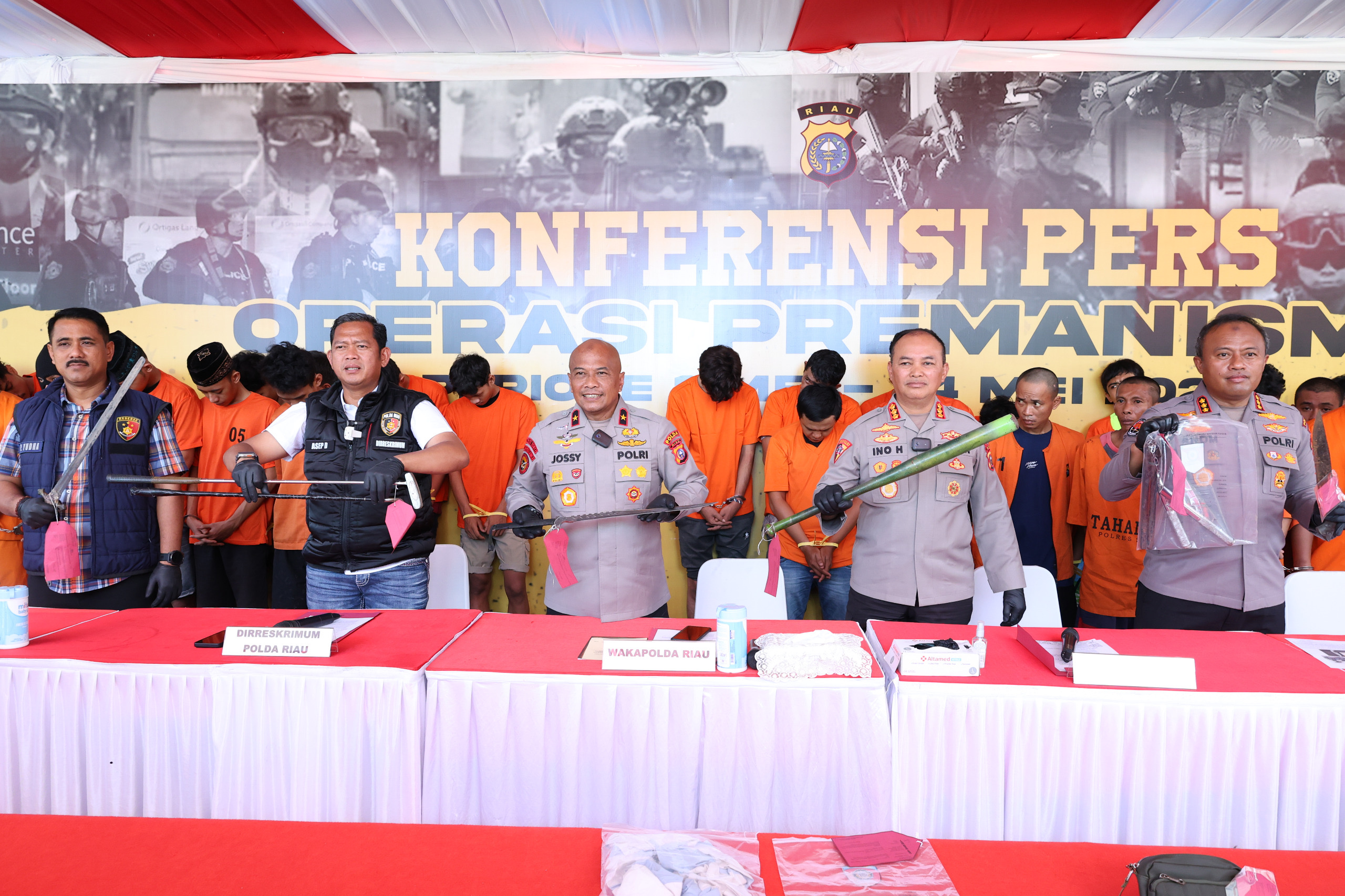 Wakapolda Riau Brigjen Pol Jossy Kusuma menjelaskan bahwa seratusan tersangka ini merupakan bentuk komitmen Polda Riau dalam memberantas keberadaan premanisme.