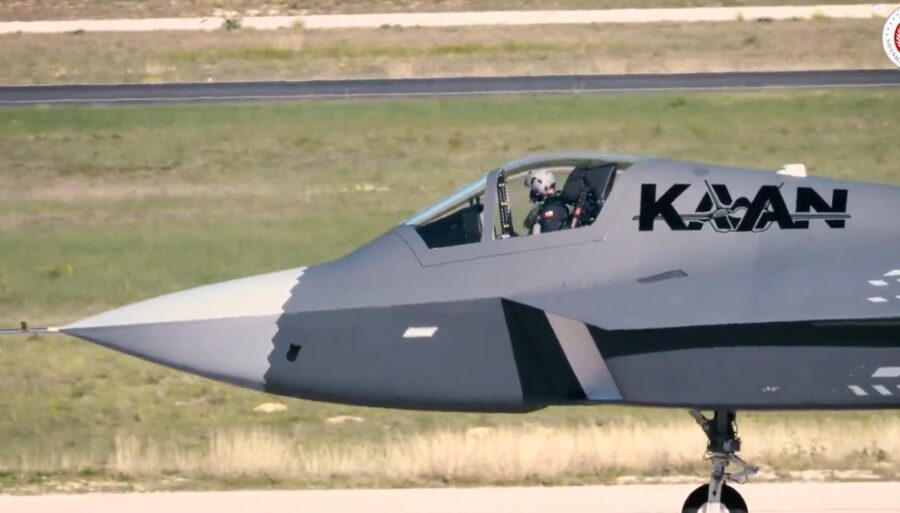 KAAN, jet tempur generasi kelima buatan TAI, melakukan penerbangan perdana tahun lalu dengan kecepatan 230 knot dan ketinggian 8.000 kaki (sekitar 2.438 meter).