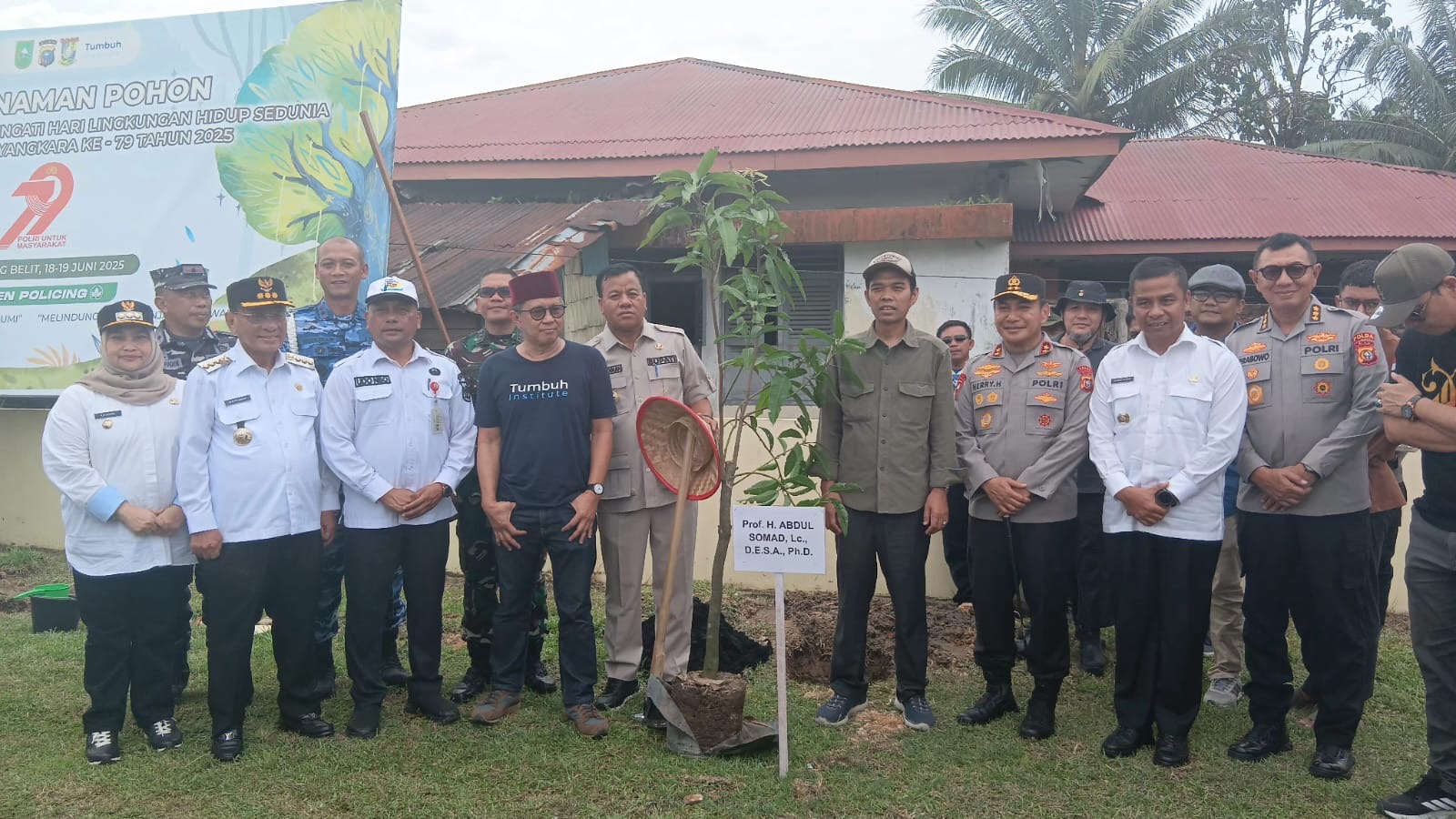 Riaumandiri.co - Polda Riau menggelar Bakti Sosial dan Penanaman Pohon di Kampar Kiri, Kabupaten Kampar, Rabu (18/6). Agenda ini dalam rangka memperingati Hari Lingkungan Hidup Sedunia dan Hari Bhayangkara ke-79.