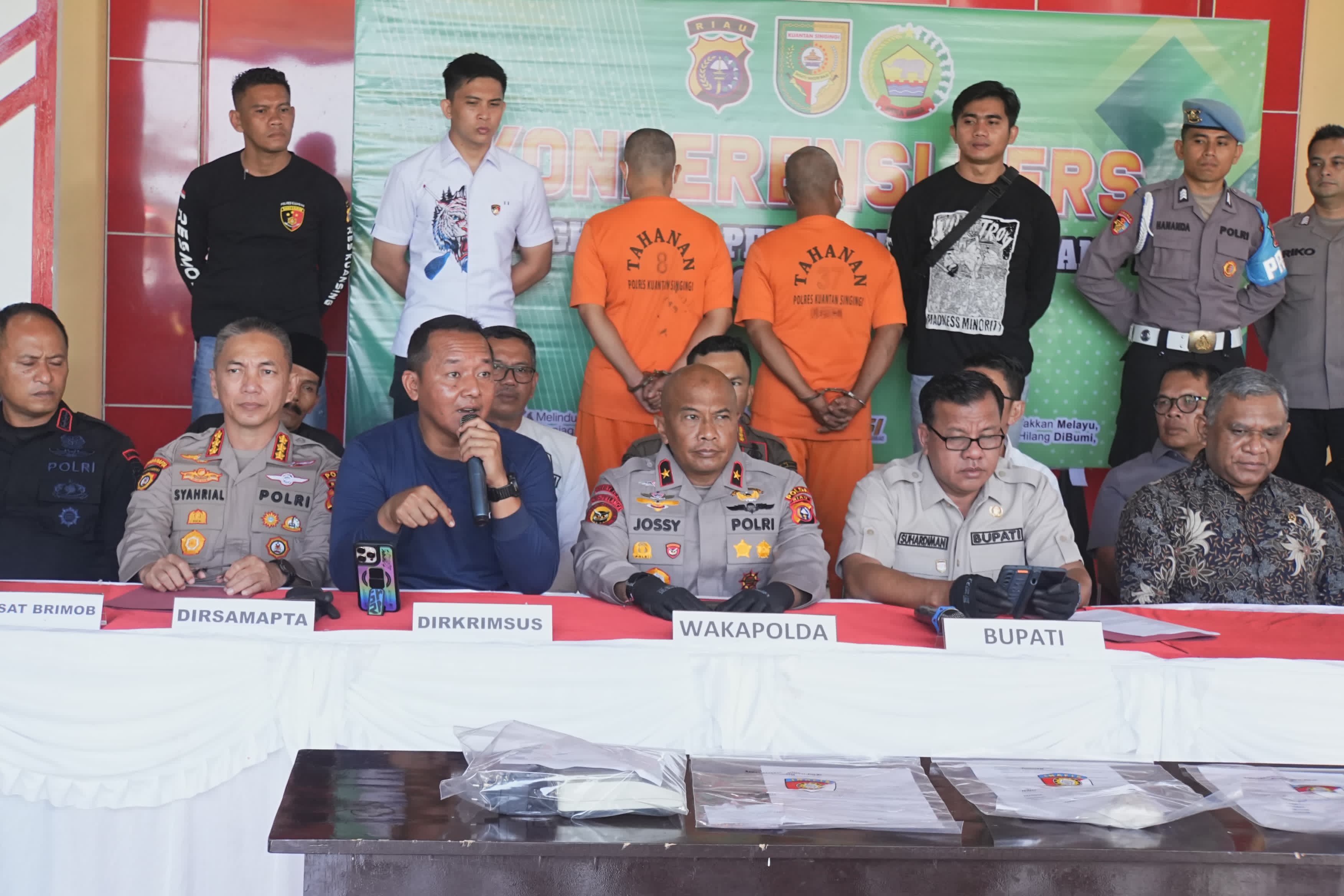 Ini dipaparkan dalam konferensi pers yang dipimpin Wakapolda Riau, Brigjen Pol. A. Jossy Kusumo di Mapolres Kuansing, Sabtu pagi (2/8).