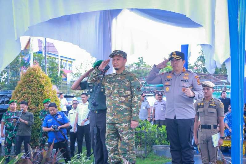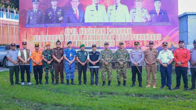 Riaumandiri.co - Wali Kota Pekanbaru, Agung Nugroho memimpin langsung Apel Kesiapan Pasukan Mencegah Kebakaran Lahan di Kota Pekanbaru tahun 2025. Apel yang diikuti oleh para personel gabungan ini berlangsung di Lapangan Mal Pelayanan Publik (MPP) Pekanbaru, Rabu (23/4).