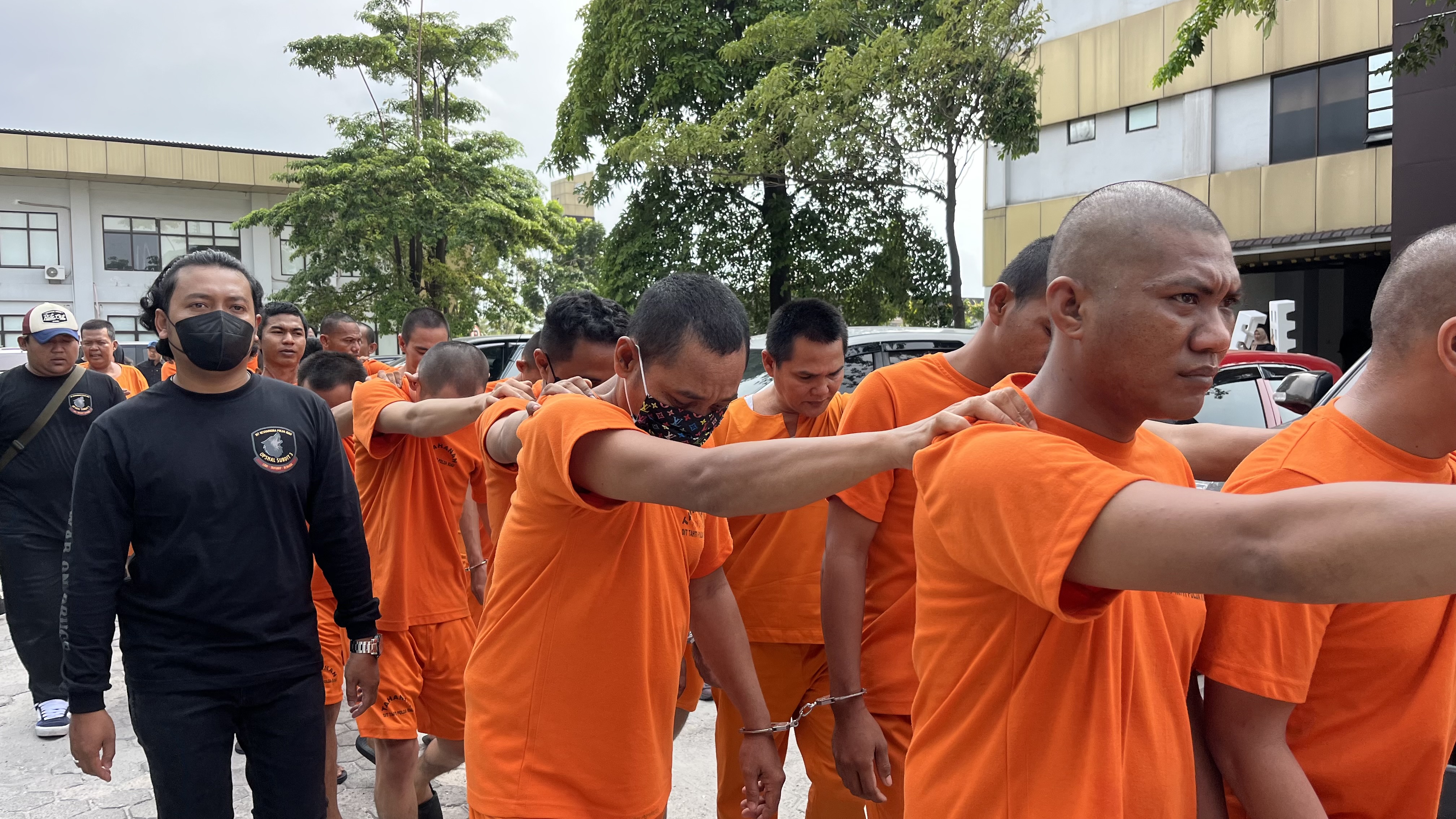 Puluhan tersangka dihadirkan dalam pemusnahan, masing-masing memiliki peran tersendiri, mulai dari kurir, pengendali hingga pengedar. Jaringan yang diungkap ini berasal dari perairan Bengkalis, Dumai dan Kepualan Riau (Kepri).