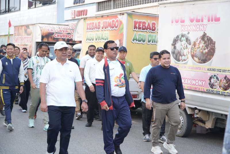 Ketetangan foto: Bupati Suhardiman Amby menuju Taman Jalur untuk membuka event pacu jalur, Jumat (10/10).
