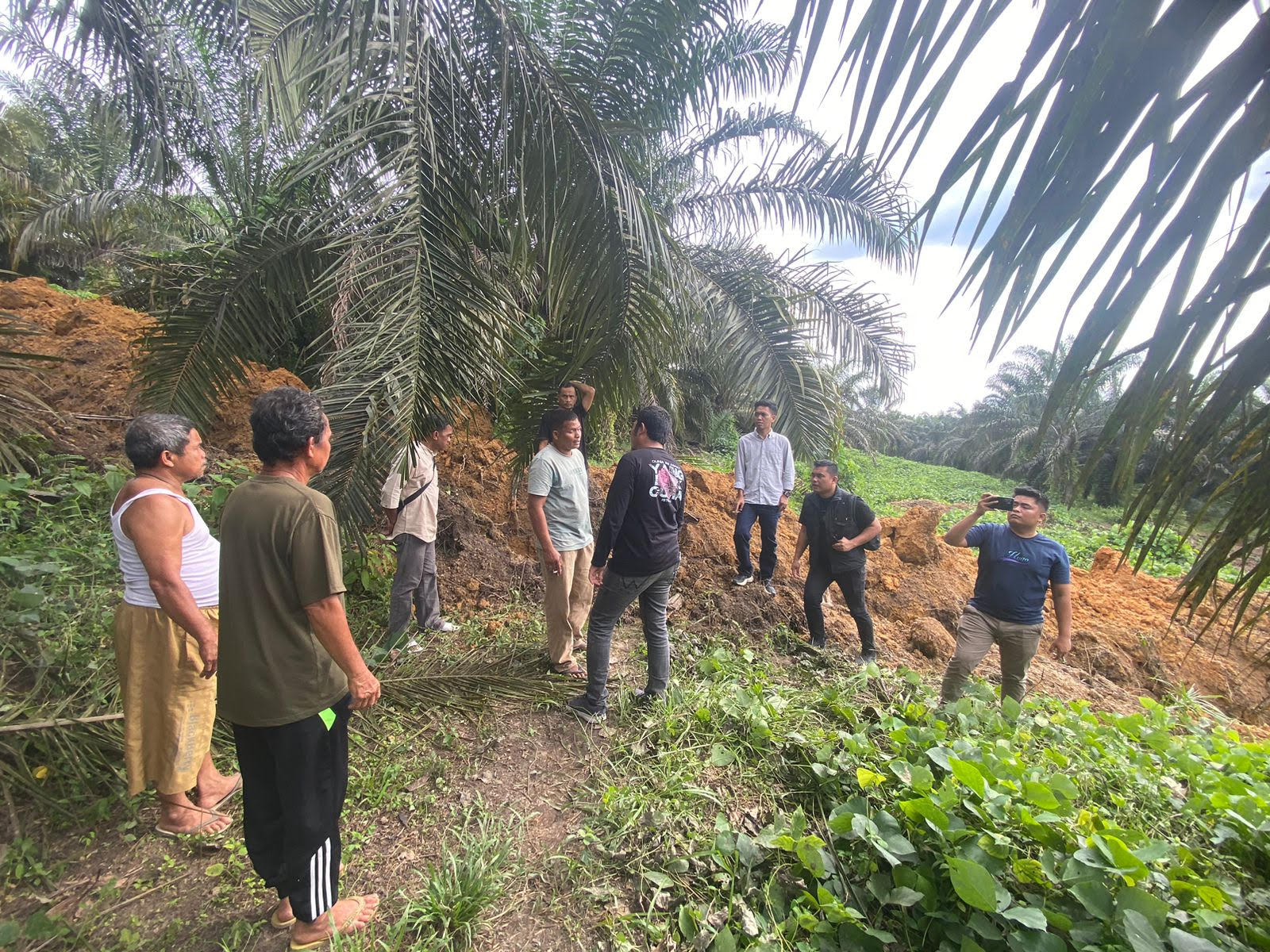 Tim menyisir area perkebunan PT SLS untuk melakukan pengecekan tempat kejadian perkara (TKP). Mereka menelusuri lokasi yang diduga menjadi tempat penganiayaan, memeriksa kemungkinan adanya bekas benturan, serta memetakan ulang area kejadian guna memastikan kronologi peristiwa secara akurat.