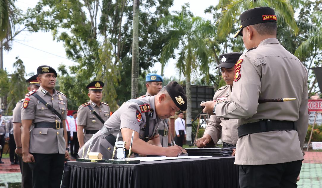 AKBP Eka juga menyampaikan apresiasi kepada pejabat lama atas dedikasi dan pengabdian selama bertugas di Polres Siak, serta meminta pejabat baru segera menyesuaikan diri.