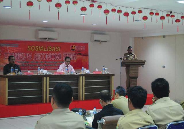 BAGANSIAPIAPI (HR)-Menjelang Sensus Ekonomi Tahun 2015, puluhan peserta yang terdiri dari kalangan dinas lingkungan Pemkab Rokan Hilir, lurah dan tokoh masyarakat, menyimak serius pemaparan yang disampaikan kepala Badan Pusat Statistik Riau, Mawardi Arsyad, tentang pentingnya kegiatan Sensus Ekonomi 2016.