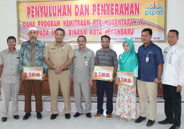 PEKANBARU (HR)-Selama 19 tahun, PTPN V telah menyalurkan sedikitnya Rp17 miliar kepada UKM yang ada di Pekanbaru. Hal tersebut terungkap saat penyerahan bantuan dana kemitraan PTPN V kepada 11 UKM yang digelar di Gedung Serba Guna Jalan Rambutan No 43 Pekanbaru, Rabu (23/12) lalu.