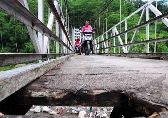 Lebih membahayakan, apabila kondisi sedang hujan deras. Jembatan ini menjadi licin karena gerigi lantainya sudah licin. Namun masyarakat tidak punya pilihan lain, karena jalan ini adalah satu-satunya penghubung antar desa. (grm/aag)