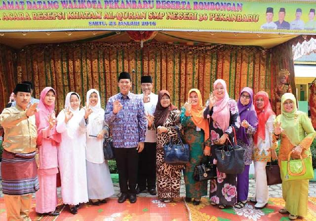 PEKANBARU (HR)-Walikota Pekanbaru, H Firdaus, membuka acara khatam Alquran di gedung Sekolah Menengah Pertama Negeri 36 di Jalan Reprita I, Komplek Perumahan Pondok Mutiara, Tampan, Kecamatan Payung Sekaki.