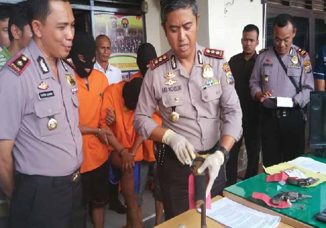 TEMBILAHAN (riaumandiri.co)- Mapolres Indragiri Hilir, menggelar ekspos tiga kasus kriminalitas yang terjadi dalam sepekan, dengan kepemilikan senjata api oleh sejumlah pelaku tindak kejahatan.