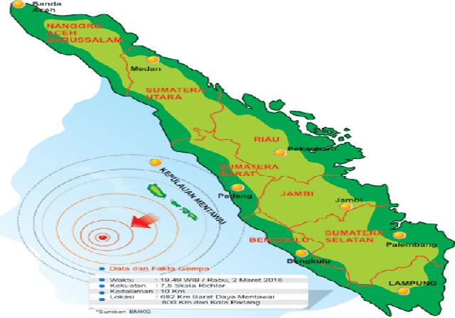 "Berdasarkan data yang diperoleh dari BMKG pusat gempa cukup jauh 682 kilometer barat daya Mentawai,