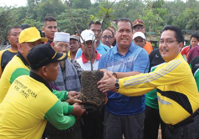RENGAT(riaumandiri.co)-Bupati Indragiri Hulu Yopi Arianto, melakukan penanaman pohon perdana di Kebun Asmaul Husna 99, Kantor Kementerian Agama Kabupaten Inhu, Kamis (3/3). Penanaman pohon ini merupakan salah satu program Kemenag dalam rangka mendukung program adiwiyata nasional sekaligus mewujudkan lingkungan hijau yang Islami.