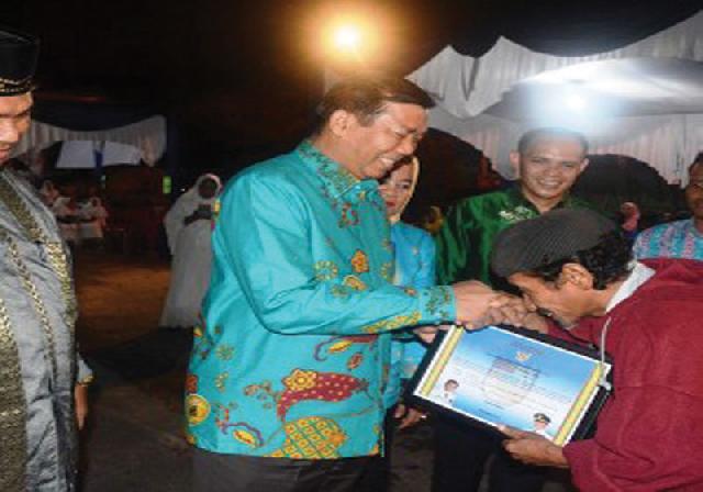 Pada kesempatan itu walikota juga menyempatkan diri untuk menyerahkan cenderamata, berupa rumah layak huni dan akte gratis untuk warga penerima program RLH tahun 2015 di kecamataan Tampan. Ucapan selamat juga tak lupa Ia sampaikan kepada dua camat yang baru.