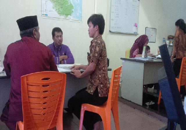 Kepala Bidang Perdagangan Disperindag Kota Pekanbaru, H Mas Irba H Sulaiman, yang memimpin sidak ke kantor distribusi X Teh, di Komplek Riau Business Center, Jalan Riau Pekanbaru, terlihat kesal saat Rudi tidak mau meneken surat tanda terima panggilan terhadap Hendrik, untuk diklarifikasi petugas di Kantor Disperindag Kota Pekanbaru, pekan depan.