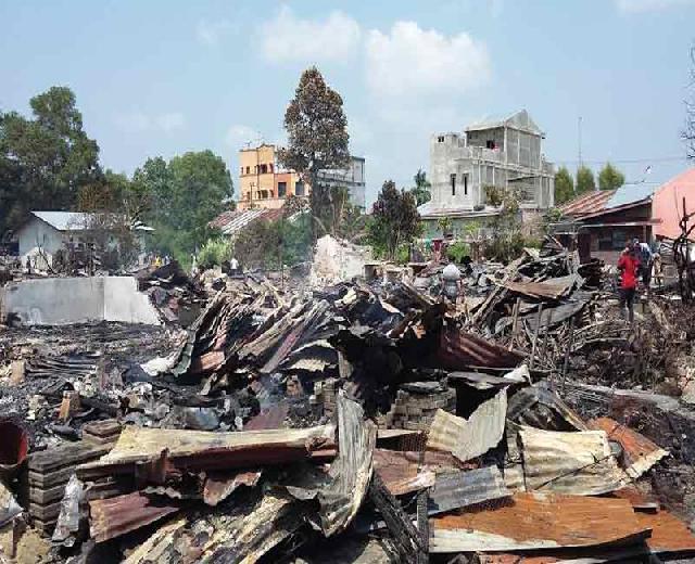 Berdasarkan informasi yang berhasil dirangkum di lapangan sekitar 50 rumah warga yang terbuat dari kayu dilokasi padat penduduk tersebut habis terbakar.