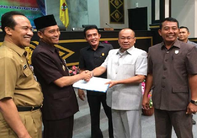 PEKANBARU (riaumandiri.co)-DPRD Kota Pekanbaru, Senin (11/4) mengelar Paripurna penyampaian dua Ranperda sekaligus, yakni, Ranperda perubahan atas Perda Nomor 5 tahun 2008, tentang penyelenggaraan Administrasi Kependudukan dan Penyampaian Ranperda Kota Pekanbaru, tentang penyelengaraan Ibadah Haji Daerah dan Tranportasi Haji Kota Pekanbaru.