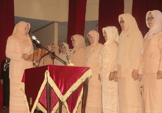 TEMBILAHAN (riaumandiri.co)-Ketua Dharma Wanita Persatuan Kabupaten Indragiri Hilir Syarifah Rohana Syarifuddin, melantik kepengurusan baru masa bakti 2016-2019, bertempat di Gedung Engku Kelana Tembilahan, Selasa (24/5).