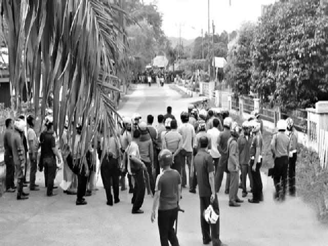 Guna mengendalikan kebrutalan massa, puluhan personel dari Polres Kota Sawahlunto, Sumatera Barat, diperbantukan ke Mapolres Sijunjung.