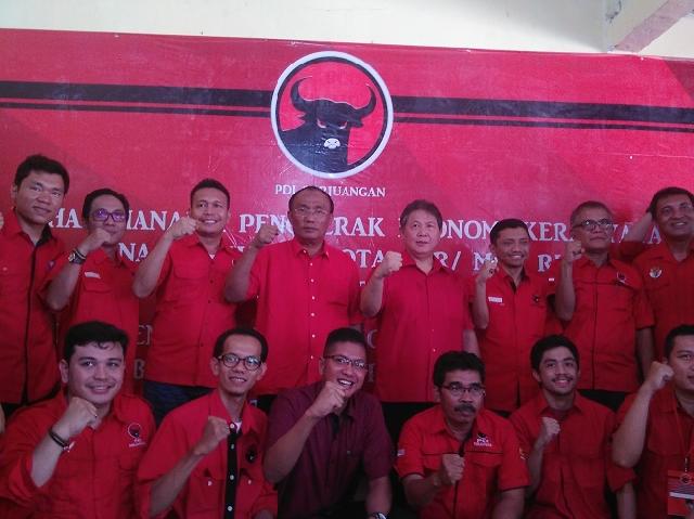 Effendi Sianipar bersama staf anggota Fraksi PDI P DPR (Foto: Surya)