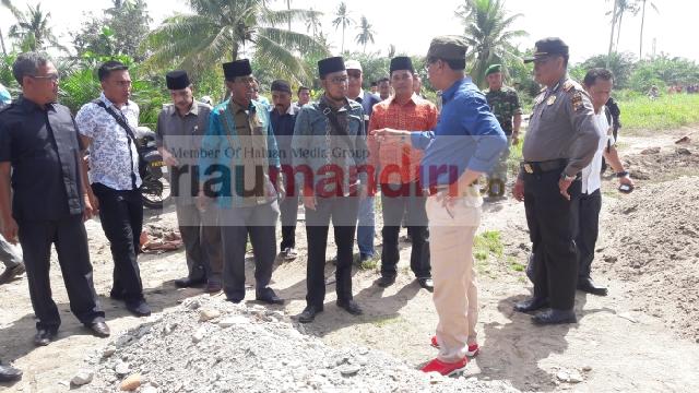 Bupati Rohil Suyatno tinjau proyek jalan poros bundaran Panipahan, Kamis (Foto: Jhoni)