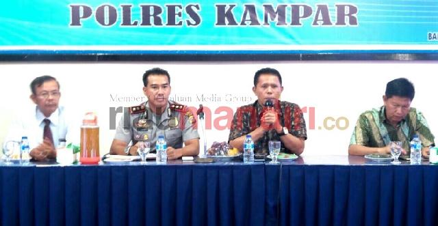 Narasumber dari Dirnarkoba Polda Riau didampingi Kapolres Kampar Edy Sumardi Priadinata saat coaching klinik di mapolres Kampar (Foto: Oni)
