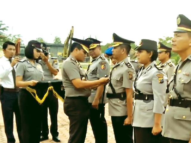 Serah terima jabatan 7 perwira Polres Rohil di halaman Mapolres Rohil, Jumat (30/9).