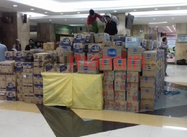 Bantuan dari Hamba Allah Berupa Air Minum Mineral yang Terkumpul di Masjid Istiqlal Jakarta (Foto: Wahyu)