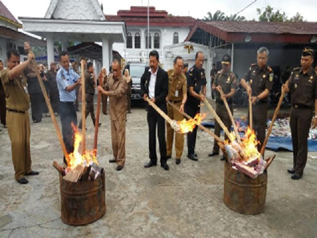 Pemusnahan barang bukti ini dilakukan di halaman Kantor Sementara Kejari Pekanbaru, disaksikan Plt Walikota Pekanbaru, Kepala Kantor Pelayanan Bea Cukai Pekanbaru dan undangan lainnya.