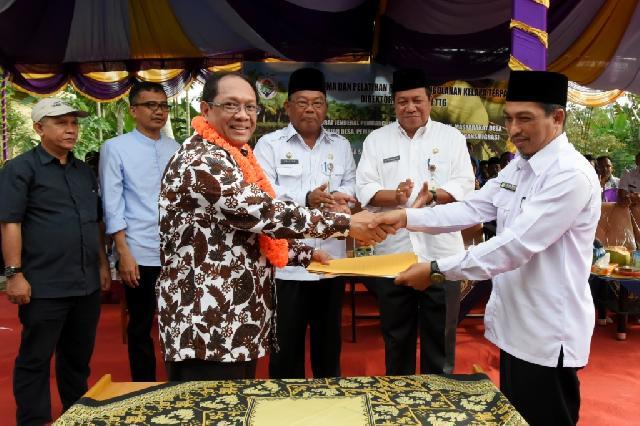 TEMBILAHAN (Riaumandiri.co) - Desa Sungai Ara Kecamatan Kempas Kabupaten Indragiri Hilir mendapat bantuan peralatan pengolahan kelapa terpadu dari Kementerian Desa Pembangunan Daerah Tertinggal dan Transmigrasi RI. Penyerahan peralatan itu dipusatkan di halaman PAUD Mutiara Desa Sungai Ara Kecamatan Kempas, berapa waktu lalu.